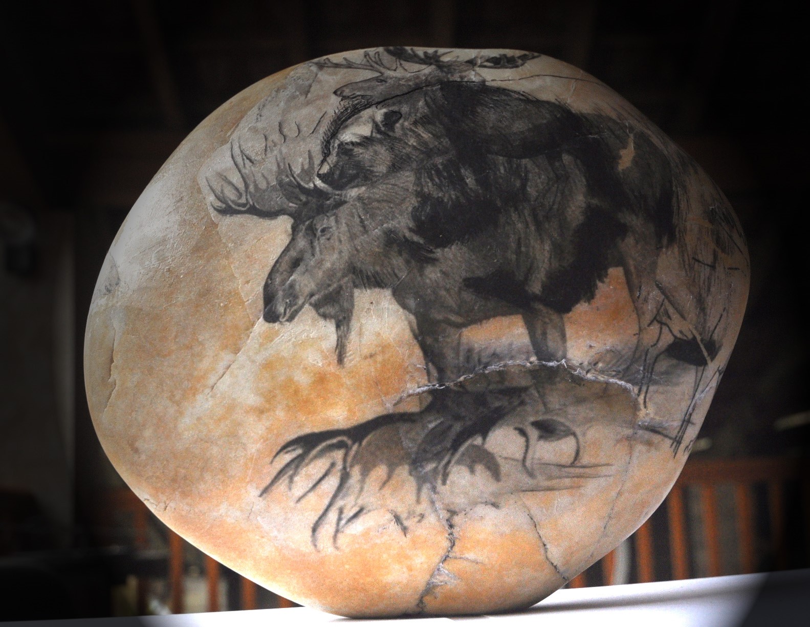 Je suis donc parti de cette idée qu’en produisant mes propres galets et en me glissant à l’intérieur grâce à une modélisation 3D, je pourrais créer du même coup des grottes ornées.